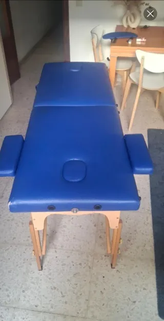 Camilla Quirumed plegable de segunda mano color lavanda. Usé esa camilla dos años, la cambio porque opté por un modelo más ancho. Esta en muy buen estado, tiene solo unas marcas de uso (ver foto), la estructura es de madera. Viene con todos los accesorios (reposo brazos, reposo cabeza...) A recoger en Cádiz centro, no hago envio