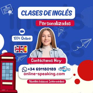 Clases diseñadas para reforzar el aprendizaje escolar y preparar exámenes oficiales. Adaptamos cada sesión a las necesidades del alumno para mejorar gramática, vocabulario, comprensión y expresión oral. 🚀online-speaking.com | WhatsApp: 691 180 189 ✅Clases individuales y personalizadas Refuerzo escolar, Preparación de exámenes y pruebas académicas Profesoras certificadas, bilingües y nativas Libros digitales incluidos Niveles MCER: A1, A2, B1, B2, C1, C2 Primera sesión gratuita (20 Min) y Matrícula gratis Cambridge (Starters, Movers, Flyers, KET, PET, FCE), Aptis, Trinity y más! Os Esperamos!