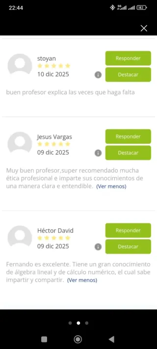Profesor de matematicas titulado con amplia experiencia en educacion dicta clases online y presencial para estudiantes de la eso, bachillerato y universitarios Matematicas discretas, estadistica, ecuaciones diferenciales, geometria analitica y algebra lineal entre otras Prof Fernando Rodríguez 674610540