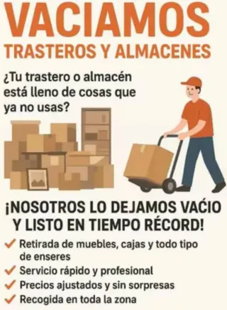 Vaciamos toda la clase de locales piso chalets seamos una empresa muy rápida disponible los siete días de la semana y las 24 horas del día póngase en contacto con nosotros y compraremos con vuestro hogar y lo dejamos todo bien limpio a un buen precio