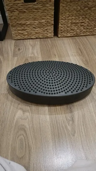 El ejercitador de estabilidad ofrece la posibilidad de usar dos lados diferentes: un lado cuenta con una superficie antideslizante; la otra superficie tiene surcos de sección redondeada para mejorar la experiencia propioceptiva y táctil.