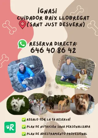 ¿Necesitas irte de casa y dejar tu mascota en buenas manos? + Sin masificación + Sin estrés + Sin jaulas + Comida sana + Paseos por la naturaleza + Con cariño Conmigo estará como en casa y cuidado de forma profesional. 🌳 PASEOS: Salidas por parques y zonas verdes con ejercicios de adiestramiento 🍎 COMIDA SANA: sin piensos alérgicos según tus indicaciones 🏡 SIN ESTRÉS : Nada de jaulas ni masificación, estará conmigo en un entorno tranquilo 📱 REPORTES: Te envío fotos y vídeos para tu tranquilidad PRECIOS: Alojamiento: 15€ Guardería de día: 10€ Paseos: 10€ 👉 Contáctame al whatsapp: 646 40 86 42