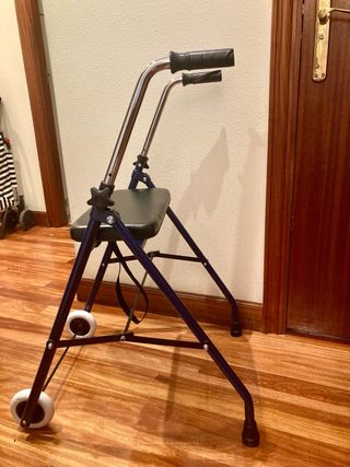 Andador ligero y plegable, ideal para facilitar la movilidad. - Fabricado en aluminio resistente. - Diseño plegable para un fácil almacenamiento y transporte. - Equipado con dos ruedas y dos topes para un desplazamiento suave. - Altura regulable 85-90 cm - Peso 2,25kg - Peso max usuario 100kg - Empuñaduras ergonómicas de color azul.