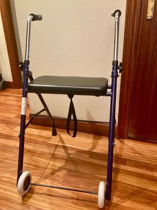 Mobiclinic®, Andador Plegable. Ajustable, estructura de acero, Empuñaduras Ergonómicas. Ligero, con asiento. 2 Ruedas delanteras, color azul. Comprado hace 1 mes pero usado solo 1 día.