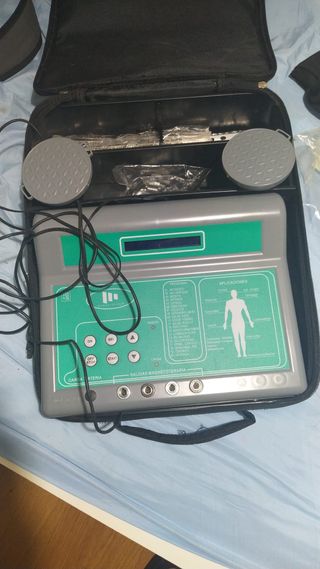 Funciona correctamente. Diferentes intesidades y zonas de masaje. Totalmente desenfundable para su limpieza. Se puede usar sobre un sofa o una silla. Tiene un pequeño descosido facil de reparar que no afecta a su funcionamiento. No se envia debido a su peso y volumen.