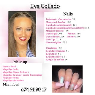 😀No te quedes sin cita para lucir manicura 💅🏽y maquillaje💄 a tu gusto. Nos preparamos para lindas celebraciones y eventos con unas manos y un rostro espectaculares 🥰💚✨💚pero, sobretodo, con unos precios de escándalo!!! Ven ya y obtén un servicio por un gran precio en Makeup y Nails!!!! 🥳🥳🥳🥳🥳🥳🥳🥳🥳 Pide tu cita por Whasap al: 674 91 90 17. Un abrazo.🤗