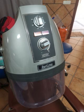 Sillón con secador de pelo de cabeza. De la marca Henry, es antiguo pero no ha tenido apenas uso, ha estado en una peluquería de hombres.