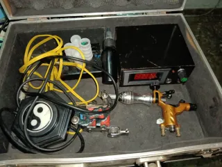 -KIT DE TATUAR PARA PRINCIPIANTES -MAQUINA ROTATIVA ESTILO DRAGONFLY EN DORADA LINEADO/SOMBREADO -MAQUINA DE BOBINA PARA RELLENO/SOMBREADO -PEDAL YIN YANG -CABLE PARA MAQUINA ROTATIVA - FUENTE DE ALIMENTACION 0/15V 50/60HZ 2A -PORTA CUP+18 CUP -BOTE DE TINTA NEGRO -PD:LE FALTA SOLO EL CABLE PARA LA MAQUINA DE BOBINA SE PUEDE COMPRAR POR INTERNET -EL MALETIN PODRIA ESTAR MEJOR PERO A ESTADO DE AQUI PARA ALLI Y -TIENE SIGNOS DE USO. CUALQUIER DUDA PREGUNTAR -ALGO NEGOCIABLE