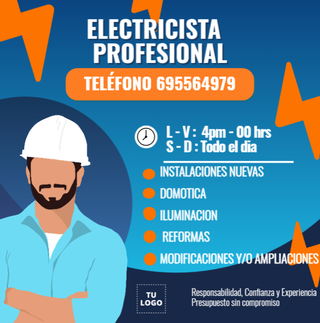 Electricista profesional Realizo todo tipo de trabajos eléctricos en viviendas y locales. ✔ Instalaciones y reparaciones ✔ Averías eléctricas ✔ Urgencias 24h Trabajo serio, rápido y limpio. Presupuesto sin compromiso.