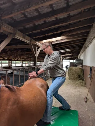 Trabajo corporal y funcional para perros y caballos y entreno funcional de jinete y su cavallo. Orientado a mejorar el movimiento, el equilibrio y el bienestar general. Acompañamiento individual para animales deportivos, senior, tras periodos de inactividad o con necesidades especiales de movilidad después de lesiones etc. Servicio a domicilio en Madrid y alrededores. Escríbame y vemos si puedo ayudarle!