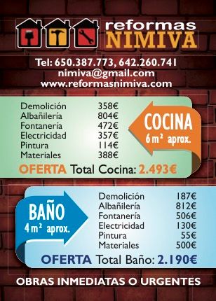 Cuadrilla de profesionales con amplia experiencia reformas integrales o parciales. Visita nuestra web, inviertaensuhogar . es BRINDAMOS CONTRATO DE EJECUCIÓN DE OBRA Y GARANTÍA POR ESCRITO. Ofrecemos: Albañilería en general Alicatado Yeso, escayola, Pladur Alisado y pintura Electricidad de oficinas, locales y vivienda con certificado. Suelos de tarima o baldosas con rodapié Fontanería Carpintería a medida Puertas y ventanas a medida Cocina a medida Demolición y retirada de escombros Cerramientos de parcelas Acristalamiento a medida Consultas al WhatsApp Salvador 616588058 Presupuesto gratis y sin compromiso!