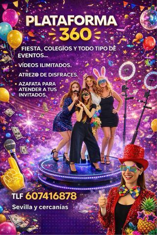 Alquila un fotomatón 360 para tu evento ❤️ al mejor precio ❤️. Ofrecemos las mejores condiciones en Sevilla y Cadiz, por lo que tenemos pocas fechas disponibles, prueba suerte con la tuya 🔥 ✅ Nuestros fotomatones 360 tienen capacidad para hasta 5 personas a la vez!! Son los mas grandes del mercado. ✅ Nuestro equipo te atenderá encantado y sin compromiso 686 71 95 63