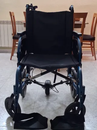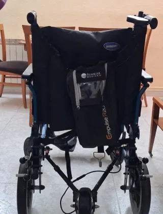 Silla de ruedas eléctrica con motor. Ancho de asiento 45cm por 41cm. Ancho total de la silla 57cm Total respaldo 56cm. Se ofrece también rectangulo para cama por 40€ y grua de Bipedestación Way-up por 650€