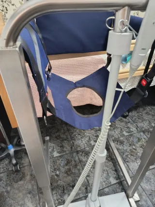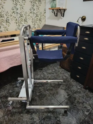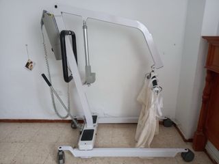 Grua para personas de alta calidad y en perfecto estado. Co todoblo necesario y funciona perfectamente. Altura 129cm, profundidad 102 cm y ancho 54 cm. Incluye arnés con 3 niveles de altura. Dispongo también de silla eléctrica y cama individual eléctrica articulada. En caso de estar interesad@ en alguno más hariamos mejor precio. No dudes en contactar para más detalles