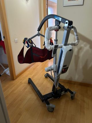 Grúa para Personas con Movilidad Reducida en Venta - Condición:Muy nueva, en excelente estado. - Calidad**: Fabricada con materiales de alta calidad, garantizando seguridad y durabilidad. - Funcionalidad: Ideal para transportar a personas con movilidad reducida de un lugar a otro con facilidad. - Tiene 2 arneses incluidos en el precio La hemos utilizado 6 meses para mi madre, poderla trasladar en casa. Solo tienes 6 meses y está como nueva. Nos costó 1.000€ y la vendemos a 450€