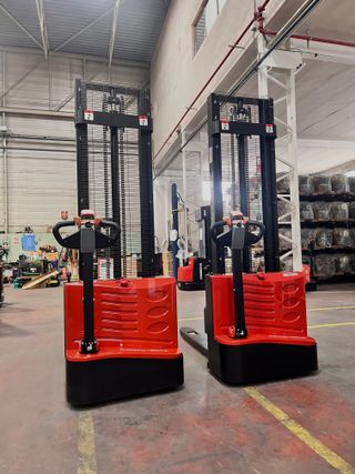 Carretillas elevadoras eléctricas nuevas con diferentes capacidades de carga y elevaciones. Opciones con batería de litio: cargan rápido, duran mucho más y no necesitan mantenimiento. Entregamos de manera inmediata a nivel nacional. Puedes ponerte en contacto con nosotros llamando al 91 854 14 14 o a través del email pedidos@netquintos.com ¡Pregunta sin compromiso!