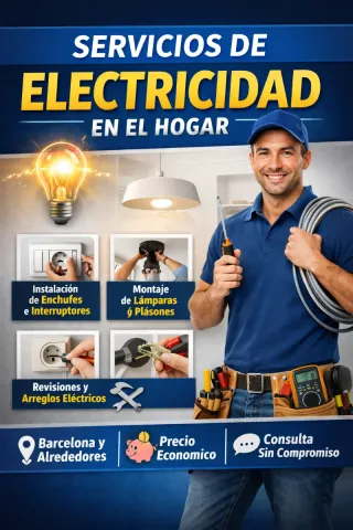 Electricista profesional en Barcelona ⚡ Realizo instalaciones, reparaciones y mantenimiento eléctrico en pisos, locales y oficinas. 🔌 Cambios de enchufes, interruptores y luminarias. 💡 Instalación de lámparas, apliques y focos LED. ⚙️ Revisiones y pequeñas reparaciones de cuadros eléctricos. 🧰 Montaje de muebles con iluminación o tomas eléctricas. Servicio rápido, económico y de confianza. 📍 Toda Barcelona y alrededores. 📞 Llámame al 613204321