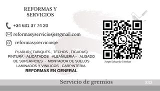 Realizamos todo tipo de reformas. Desde: Pintura Pladur Suelos Rehabilitación de fachadas Rehabilitación de interiores Etc... Pidan presupuesto sin compromiso.