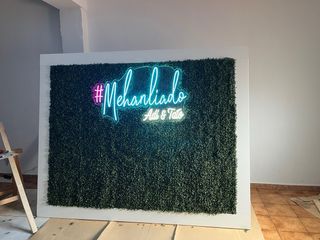 Vendo photocall de grandes dimensiones para eventos. Hecho de madera lacada, contrachapado, hierba artificial y soporte metalico para colocarlo en cualquier sitio (sin led)