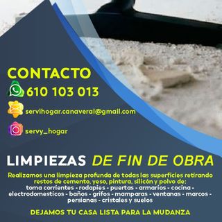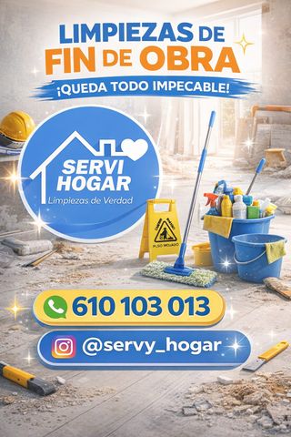 🧹 LIMPIEZA DE FIN DE OBRA PROFESIONAL 🏗️✨ En Servi Hogar somos especialistas en limpieza de fin de obra, dejando tu vivienda o local listo para entrar a vivir después de reformas, construcción o remodelación. Eliminamos: ✔️ Restos de obra ✔️ Polvo de construcción ✔️ Cemento y pintura ✔️ Manchas en suelos y cristales ✔️ Limpieza profunda de baños, cocina y ventanas Trabajamos con productos profesionales y maquinaria especializada para conseguir un resultado impecable. 🏠 Ideal para: • Reformas de viviendas • Obras nuevas • Pisos en alquiler o venta • Locales comerciales • Limpieza después de construcción ⭐ Resultado garantizad