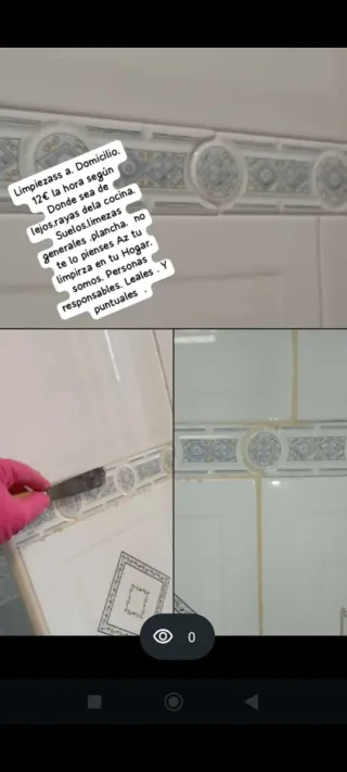 Hola, realizo limpieza para hogares, oficinas y obras, tengo 5 años de experiencia. Soy una persona responsable, honesta y perfeccionista con mi trabajo. Cobro 12€ la hora. También se cocinar pero eso seria aparte.