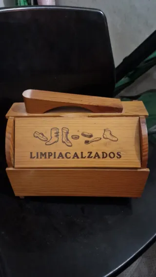 Caja limpia calzados de madera con hueco para guardar cepillo y productos de limpiezas