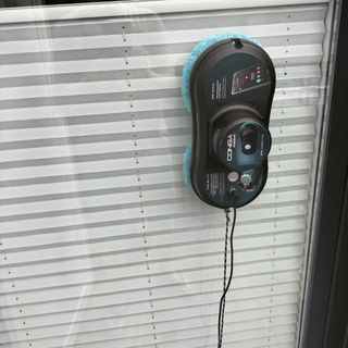 Eléctrico, con dos rodillos. Se pega al cristal como un imán.