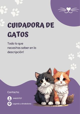 Hola! Soy Silvia y me encantan los animales. Ofrezco mis servicios en Leganés y alrededores: Paseos diarios adaptados a la energía de tu perro. Cuidado de gatos, perros o cualquier animal que necesite cuidados en tu domicilio (alimentación, juego, limpieza, compañía...) Trato responsable y cariñoso. Para saber los días y horarios háblame sin compromiso! Si buscas a alguien de confianza que cuide a tu mascota como si fuera la suya,¡contáctame! Precios negociables en base a las necesidades.
