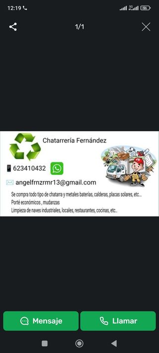 Y se compra todo tipo de chatarra o se puede cambiar porte de escombro por chatarra si tienes limpieza de todo tipo naves. Locales parcelas etc..