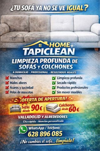 Tu sofá tiene manchas, mal olor o está lleno de ácaros y pelos de mascota? ✨ Limpieza profunda profesional a domicilio, sin mover muebles y con resultados visibles al momento. ✅ SERVICIO PROFESIONAL ✔ Limpieza profunda de sofás y colchones ✔ Eliminación de manchas y olores ✔ Ácaros, suciedad y bacterias ✔ Productos profesionales ✔ Secado rápido ✔ Ideal para hogares con niños y mascotas 📍 VALLADOLID Y ALREDEDORES 🏠 Servicio a domicilio 📸 Antes y después 📞 WhatsApp / Teléfono: 628 896 085 👉 Escríbeme por WhatsApp y dime qué necesitas (sofá o colchón) y te doy precio sin compromiso. 🔥 No cambies el sofá… límpialo