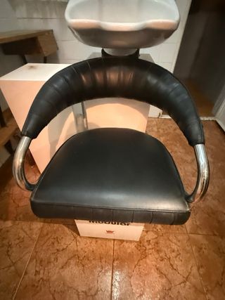Lavacabezas con silla de cuero y mesita con cajone