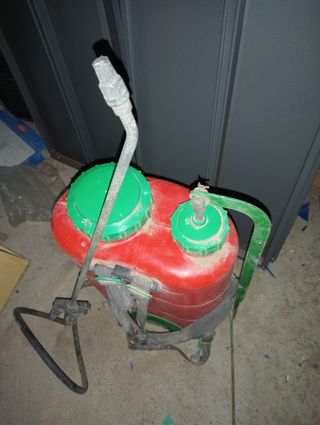 Se vende una mochila pulverizadora de la marca Sifrer. Es de color rojo y verde, y parece estar en buen estado, aunque algo usada. - Marca: Sifrer - Tipo: Mochila a presión - Color: Rojo y verde