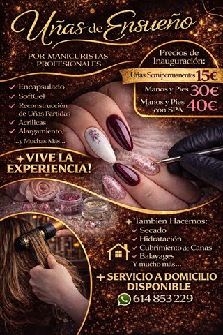 💅 Manicurista profesional Ofrezco servicios de manicura y pedicura con acabados de alta calidad. Trabajo con productos profesionales, máxima higiene y atención personalizada para que tus uñas luzcan perfectas. Servicios: ✔️ Manicura semipermanente ✔️ Uñas de sof gel y base rubber ✔️ Diseños personalizados ✔️ Reparación y mantenimiento 📍 Atención a domicilio o en mi espacio según disponibilidad 📩 Escríbeme sin compromiso 634 06 92 03