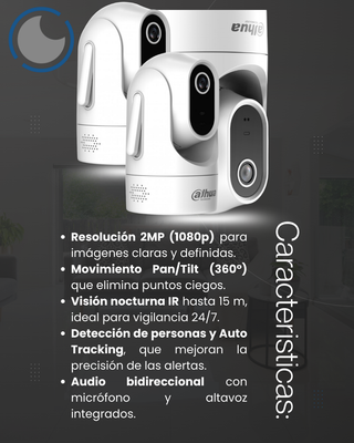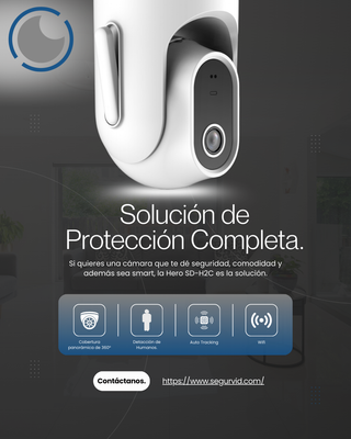 Cámara de videovigilancia en color blanco. - Diseño moderno y compacto. - Base giratoria para ajuste de ángulo. 🔥 Visión 360° real: gira casi por completo y no deja puntos ciegos. 🧠 Detecta personas y sabe diferenciar si alguien entra a la habitación. 🎯 Auto Tracking: si algo se mueve, lo sigue. Literal, como si fuera un asistente personal vigilando por ti. 🎤 Audio bidireccional: puedes hablar a través de ella. Sí, como un mini intercom de espía. 💾 Memoria hasta 512GB: para guardar TODO. 📱 Control total desde la app DMSS: abre tu móvil y listo.