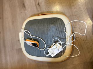 Cojín masajeador eléctrico.Era de mi madre ya no lo utiliza. Tiene unos roces en la piel donde esta la agarradera pero de haber estado guardado por lo demás todo correcto