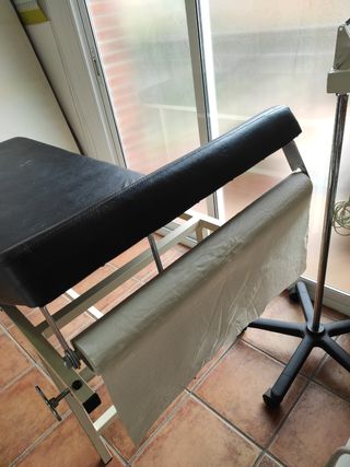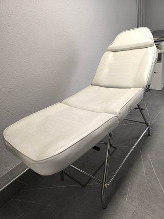 Camilla masajes, estheticien. Buen estado. Un poco descolorida pero, la polipiel en buen estado. Cabezal y reposapiés regulables