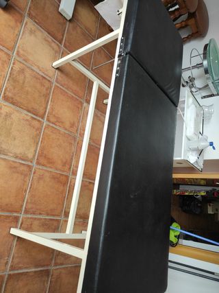 Cama plegable para masajes, ideal para profesionales o uso doméstico. Está en buen estado y lista para usar. - Estructura metálica resistente. - Tapizado de cuero sintético negro. - Fácil de plegar y transportar. - Asa de transporte integrada.