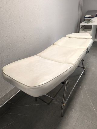 Cama de masajes articulada, inoxidable, piel, antigua pero muy cuidada y excelente calidad.