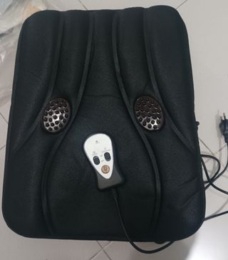 Masajeador de espalda de la marca Homedics, en buen estado. Es de color gris oscuro y tiene un diseño moderno. - Incluye mando a distancia. - Dispone de varias funciones de masaje. - Se conecta a la corriente eléctrica.