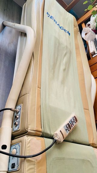Camilla de masajes CERAGEM, practicamente nueva,termomasajeadora, automatica, que combina,masaje y presion con calor infrarrojo atraves de piedras de jade mediante rodillos que se desplazan por la espalda de manera agradable y relajante,combinando los efectos del masaje quiropraxia,acupresion C termoterapia.Realiza amasamiento n zona de cervical, dorsal, lumbar, sacra y calor en piernas.