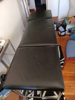 Cama de masajista plegable, ajustable en altura. Tiene algún desperfecto mínimo, lo de las fotos.