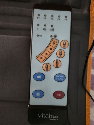 Vendo camilla de masaje Jocca Vitalyvida, en buen estado. - Incluye mando a distancia. - Diseño negro y naranja. - Perfecta para relajarse.