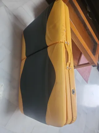 Camilla de masaje portátil. Se vende por no usar y tener guardada. Patas madera muy funcional y comoda de llevar. Al estar guardada la gata le hizo unos arañazos por eso el precio. Esta en las lagunas de mijas. 6 95 975 003