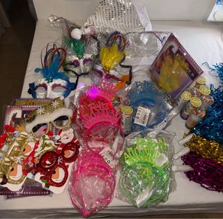 ¡Dale brillo a tu fiesta! ✨ Pompones metálicos , máscaras con brillantes , Gorros Navideños de tela y otros de cartón , Diademas Luminosas, Diademas de lentejuelas y plumas,gafas navideñas,tubos de confetti. PRECIOS: Pompones metálicos: 1,5€ Máscara con brillantes: 3€ Gorros de tela: 1,5 carton: 1,20 diademas luminosa: 3,70 de lentegualas: 1,20 Gafas navideñas:2€ Tubos confetti: 1,5€ 🎉 ideales para Estas fiestas navideñas o para cumpleaños, animadoras, eventos y celebraciones. Colores llamativos, livianos y resistentes 💃 📦 Entrega rápida 💬 Escríbeme por el chat y llévate los tuyos antes que se acaben