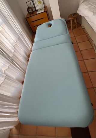 Camilla muy cómoda. De 70cm de ancho. El acolchado esta en perfectas condiciones, es bastante grueso. De marca ecopostural. Facil de plegar e ideal para domicilios. Tiene unas grietas, como se ve en la foto, pero no afecta a la comodidad al colocar la cara en el hueco. Una de las cuerdas tensoras se arreglo pero funciona bien. Nueva cuesta mas de 400€ Puedes ver sin compromiso.