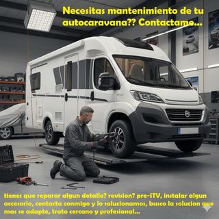 Necesitas mantenimiento o reparcion de tu autocaravana?? Instalar accesorios, hacer revision, reparar algo?? Consúltame y miramos de buscarle la solucion, manten tu autocaravana campwro o caravana siempre a punto, la gran mayoria de reparaciones puedo hcerlas a dimicilio o garage, consultame sin compromiso, no lo dejes para mañana, tenla a punto hoy mismo