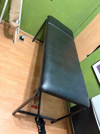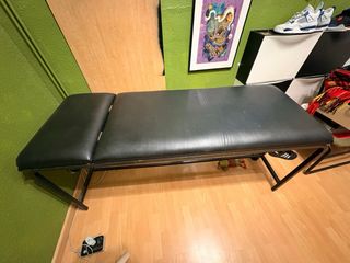 Como nueva, poco uso. Camilla negra fija de acero de 2 cuerpos ligereza, versátil y que cuenta con respaldo regulable