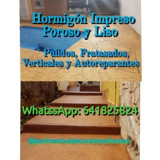 Empresa de hormigón impreso se realizan trabajos de hormigón liso, fratasados, pulido , muros, monocapas, hormigón poroso etc pida su presupuesto gratuito ya . trabajamos por toda la comunidad valenciana Alicante .Benidorm , Torrevieja etc Castellón ,Burriana, Benicasim etc Valencia ,paterna ,cañada ,Náquera etc (hormigónimpresofranman)