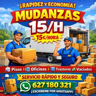 🚚 MUDANZAS PROFESIONALES – RÁPIDO, SEGURO Y ECONÓMICO ¿Necesitas una mudanza sin estrés? ¡Nosotros nos encargamos de todo! Ofrecemos servicio completo de mudanzas para pisos, casas, oficinas y locales. 👷♂️ Nuestro equipo Personal experto, puntual y de confianza Tratamos tus pertenencias como si fueran nuestras Experiencia en mudanzas pequeñas y grandes 📦 Servicios incluidos ✔️ Carga y descarga profesional ✔️ Subida y bajada por escaleras o ascensor ✔️ Montaje y desmontaje de muebles (camas, armarios, mesas, sofás, etc.) ✔️ Colocación de muebles en el nuevo domicilio, ✔️ Mudanzas locales y a corta distancia 🛡️ Máxima seguridad