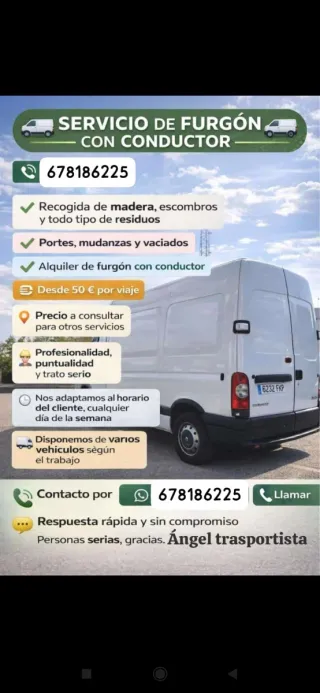 hola se hacen portes y mudanzas recogida de escombros y limpieza de naves precio económico pregunten sin compromiso